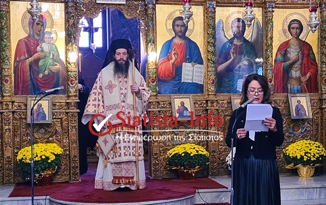 Μετά το πέρας της Δοξολογίας η εκπαιδευτικός κα Δέσποινα Τζιλίνη εκφώνησε τον πανηγυρικό της ημέρας και αναφέρθηκε στα γεγονότα της Μάχης της Σιάτιστας, 4 Νοεμβρίου 1912.